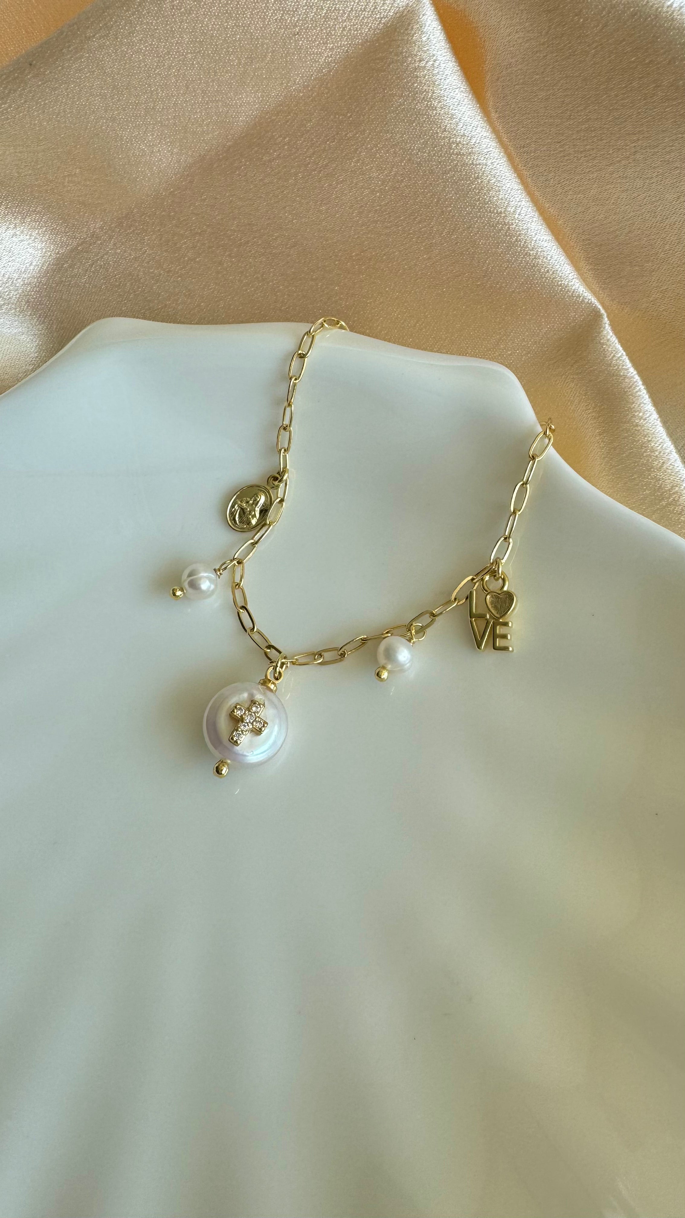 Elige entre perlas, piedras y metales enchapados en oro y crea una pieza que refleje tu estilo. En Claudia Joyas, tú eres parte del proceso.