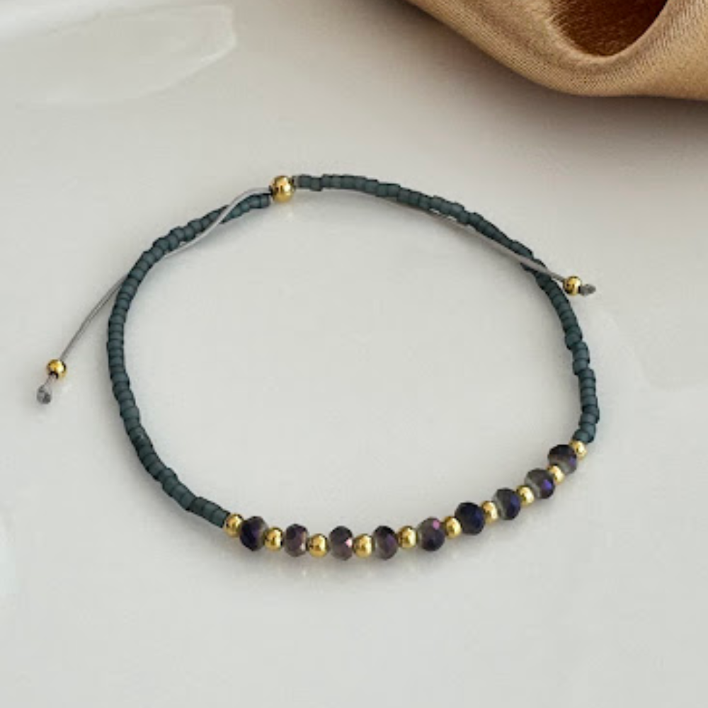 Balines enchapados en oro, cristales tornasol y miyuki
